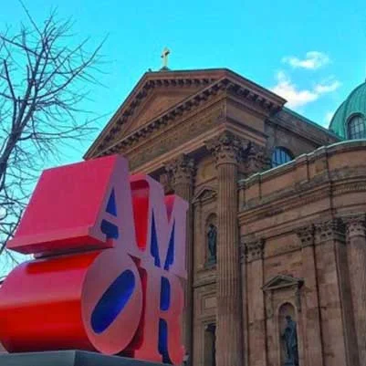 Another example of Indiana's translated LOVE designs is AMOR (1998) – which means "love" in both Spanish and Latin. This particular sculpture spent a year on the east terrace of the Philadelphia Museum of Art, where it served as a backdrop for the 2015 World Meeting of Families and a public mass led by Pope Francis during his papal visit to the city.