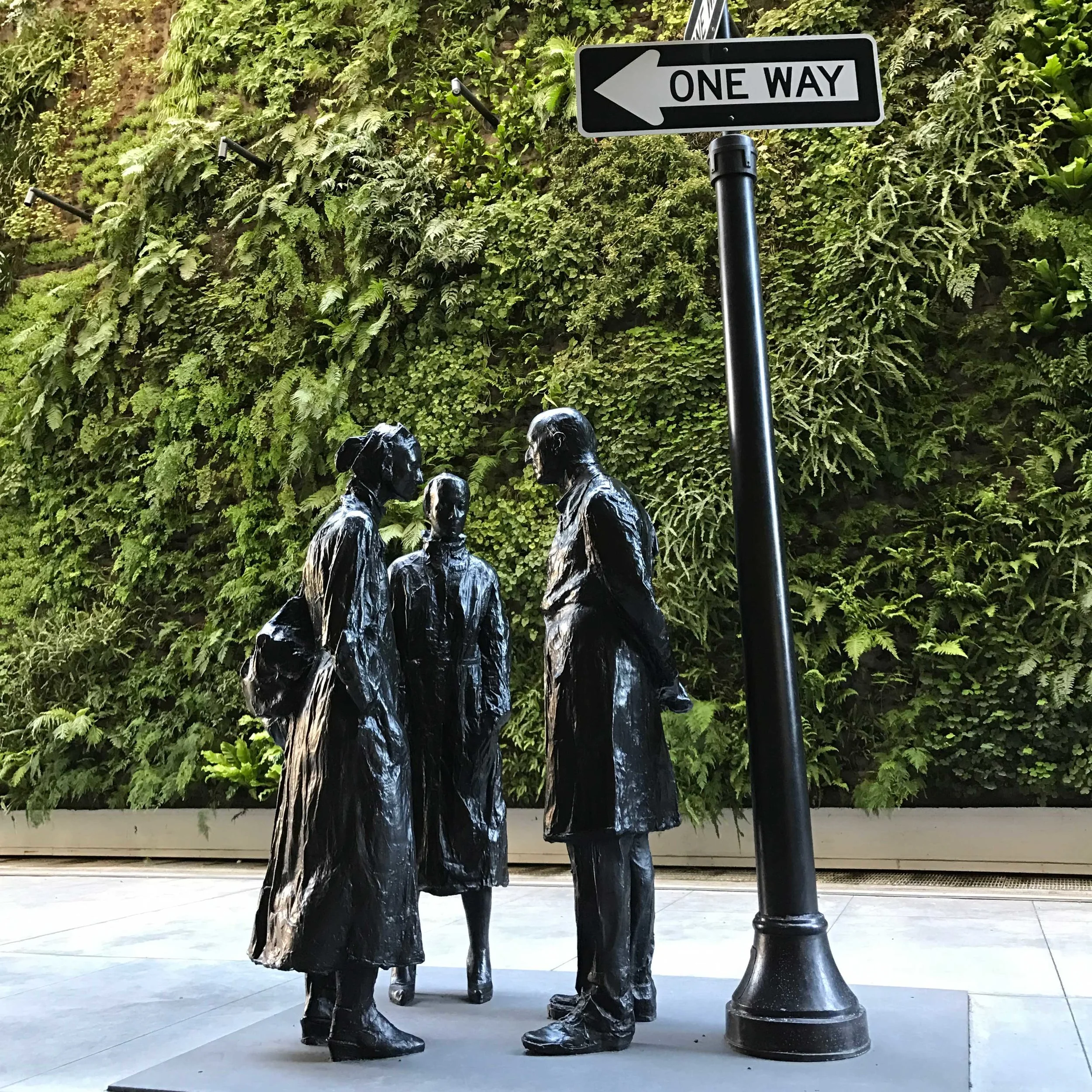 George Segal, Chance Meeting, 1989. Backdrop: SFMoMA's living wall.