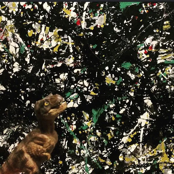 Tim the T-Rex was dazzled by some of the Jackson Pollock paintings in the Dallas Museum of Art's Jackson Pollock: Blind Spots exhibit.