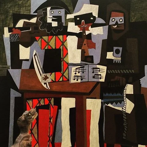 The Italian theatrical tradition was a heavy influence on this Cubist painting, with a man in Harlequin (the diamond-checked costume) playing the violin, Pierrot (the sad clown character) playing the recorder, and a Franciscan friar playing the accordion.
